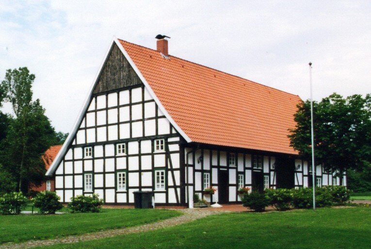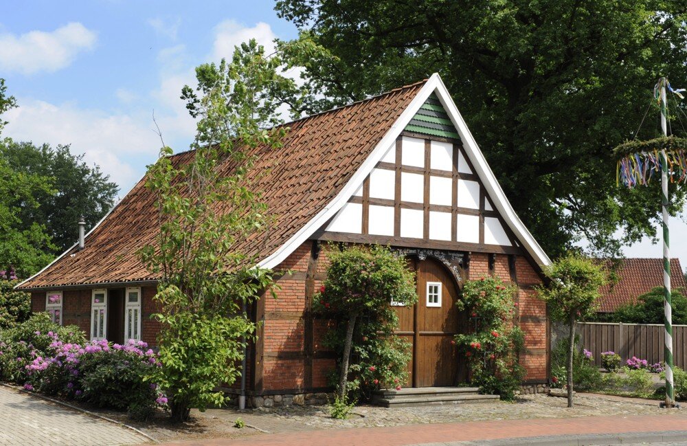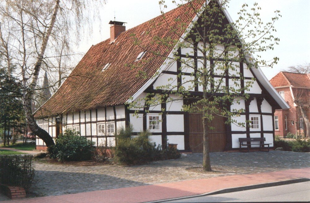 Das Heimathaus, 1696 als Heuerhaus der Kötterei Borgmann errichtet, war viele Jahre Heuerlingsstelle und Schuhmacherbetrieb.1934 errichtete Gustav Fischer hier seine Werkstatt - von ihm liebevoll die "Fischer-Werke" genannt - für die beginnende Motorisierung ein. Er verfügte bereits über eine Hebebühne vor dem Haus.Wegen des Baus der neuen Ortsdurchfahrt wurde das Haus in den Jahren 1979/1980 abgetragen und 1982 einige Meter seitlich versetzt wieder errichtet. Seither dient das Fachwerkhaus als Heimathaus und steht für Anlässe jeglicher Art zur Verfügung.
